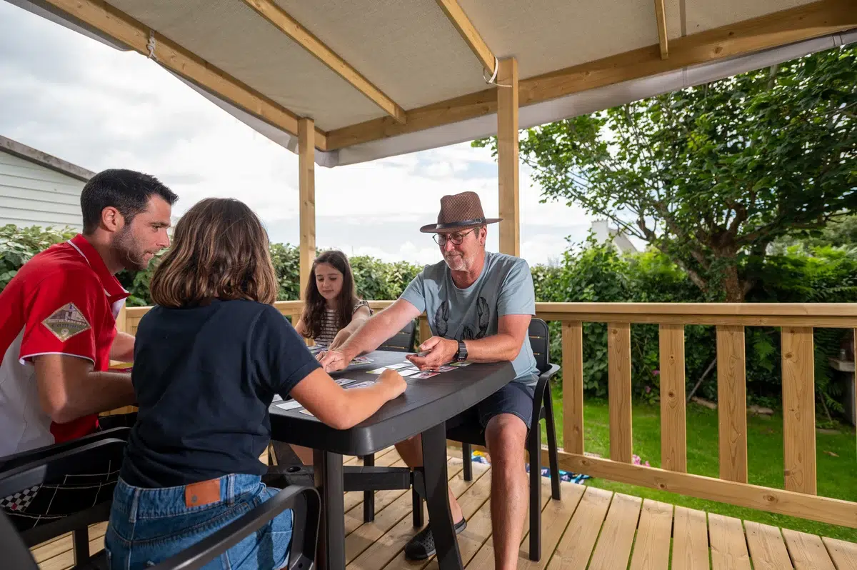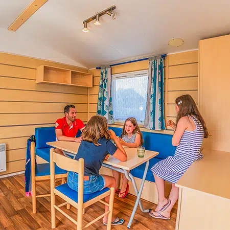 Avec deux enfants, choisissez le mobil-home classique 4/5 personnes ou le locatif de la gamme Grand Confort. Une grande terrasse et des équipements supplémentaires.