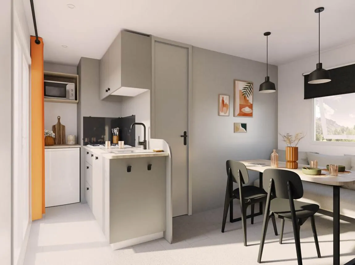 Le mobil-home Escale est parfait pour une escapade en bord de mer, le temps d’une nuit, d’un court ou long séjour.